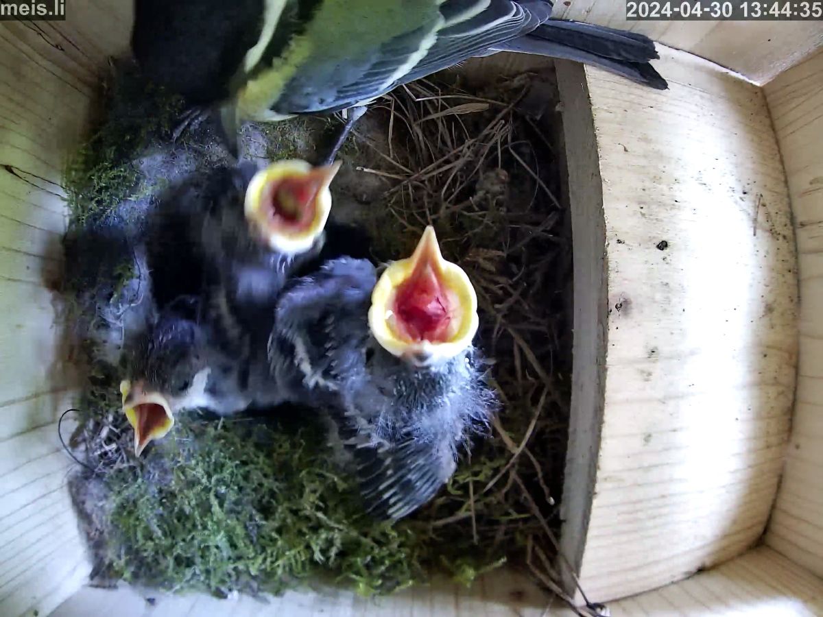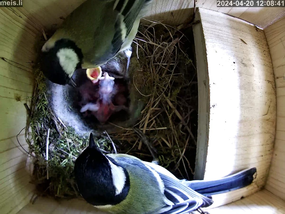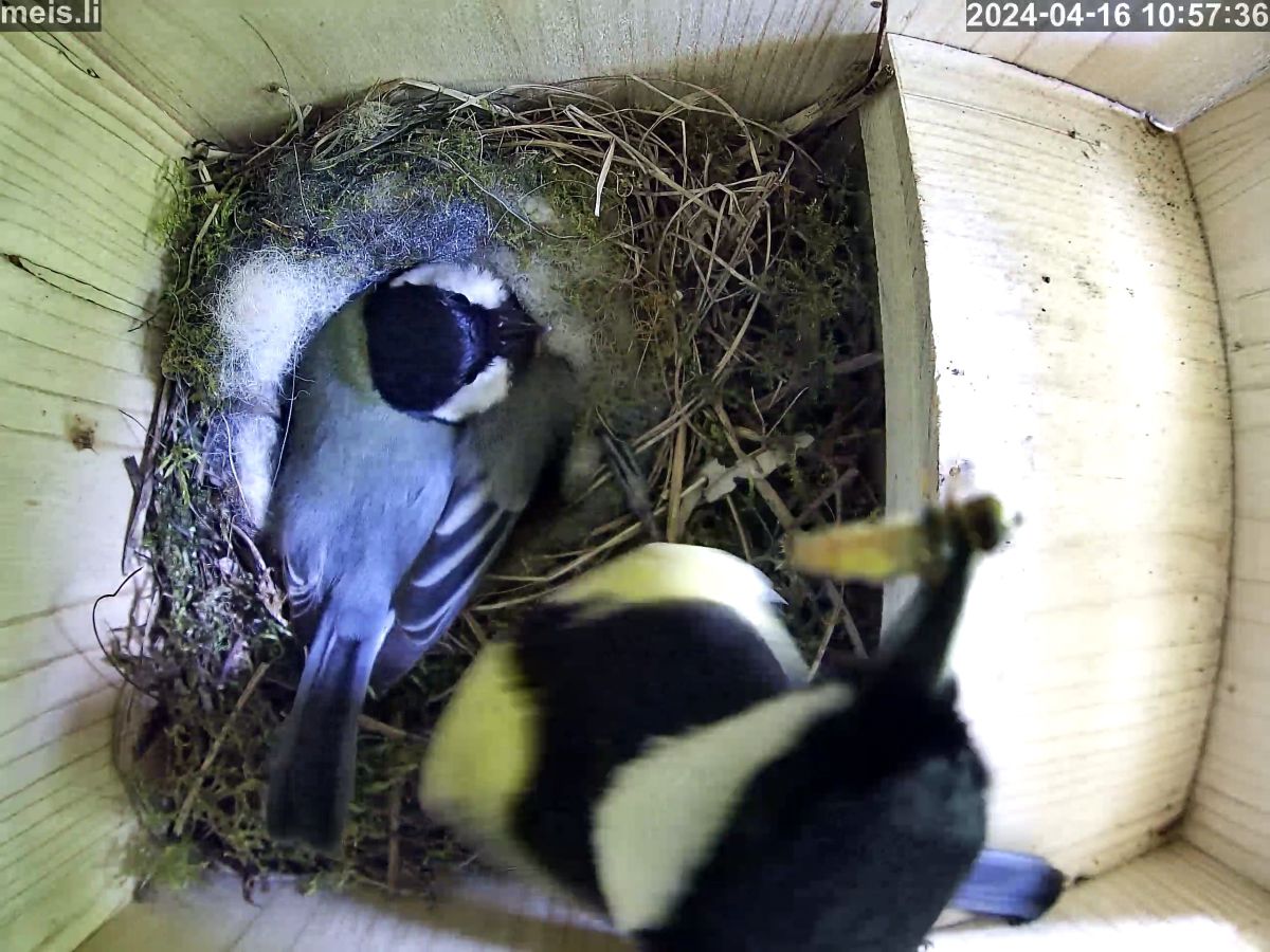 Am Morgen liegen Eierschalen im Nest. Offensichtlich sind weitere Meisen geschlüpft.